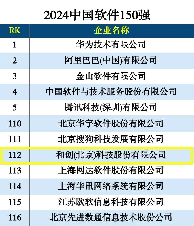 紅圈新聞 | 喜報(bào)!恭喜和創(chuàng)科技入選“2024中國軟件150強(qiáng)”