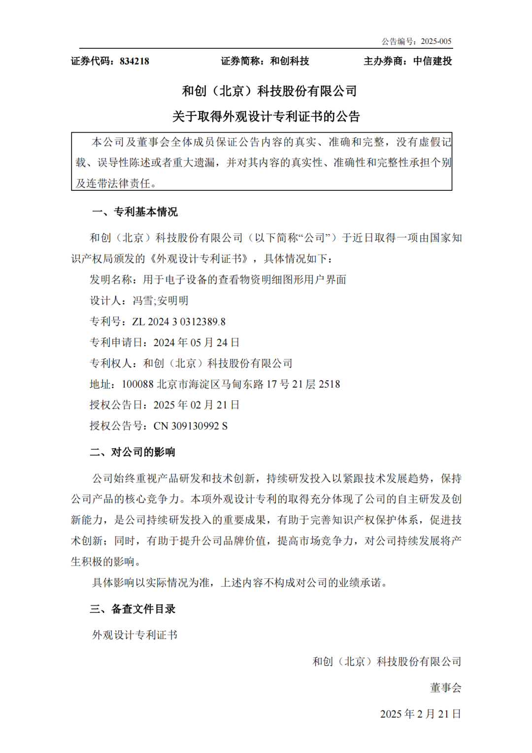 和創(chuàng)科技榮獲最新外觀設(shè)計(jì)專(zhuān)利