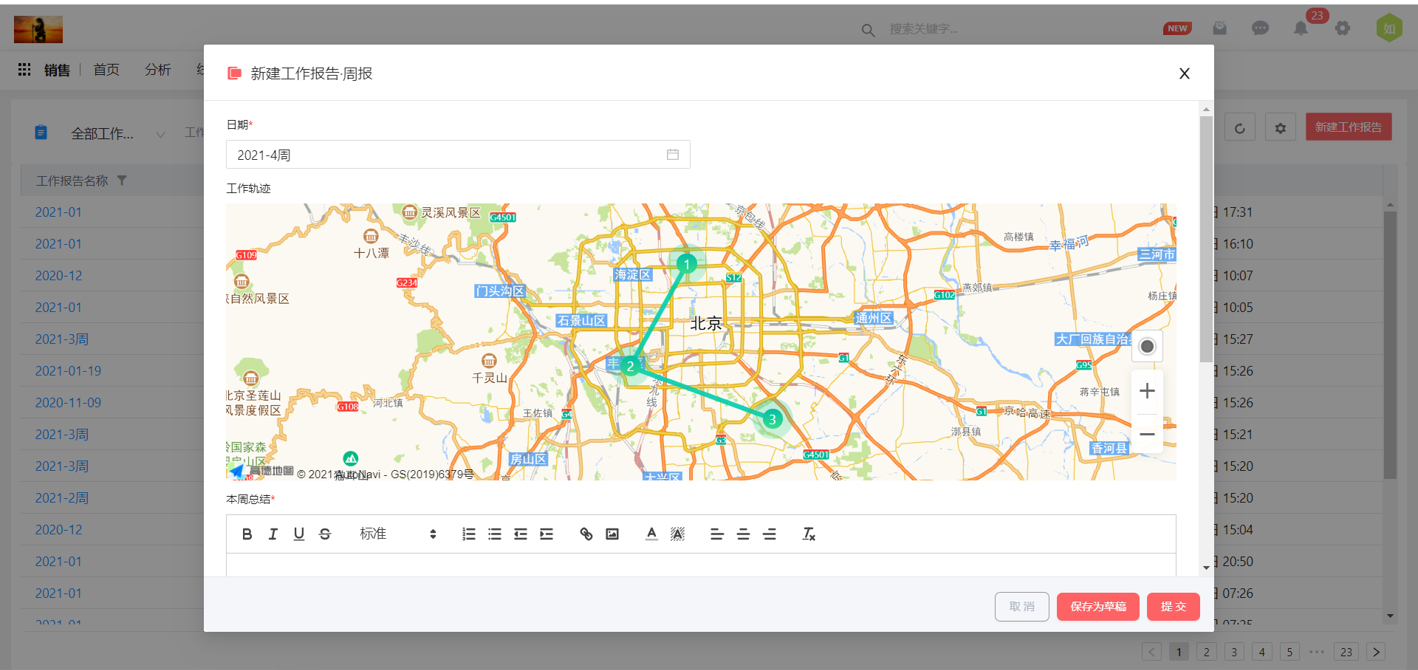 工作報告支持定位,可以生成軌跡報告了,同時工作計劃總結(jié)支持結(jié)構(gòu)化形式填寫,相信你的工作報告以后會更專業(yè)出彩。