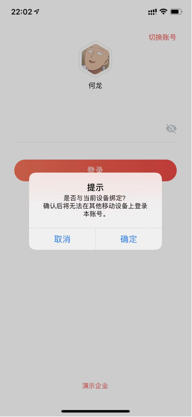 功能開啟后,賬號(hào)第一次在移動(dòng)端登錄時(shí),將提示進(jìn)行設(shè)備綁定,同意后可正常進(jìn)入系統(tǒng)使用;取消則無法登錄,如果需要更換手機(jī),請(qǐng)聯(lián)系管理員進(jìn)行后臺(tái)的解綁操作
