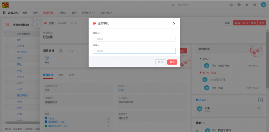 6)審批流發(fā)起時(shí),如果同時(shí)需要選擇抄送人和審批人,會(huì)合并至一個(gè)窗口內(nèi)進(jìn)行選擇