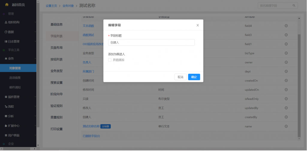 3)創(chuàng)建人和修改人可添加為跟進(jìn)人