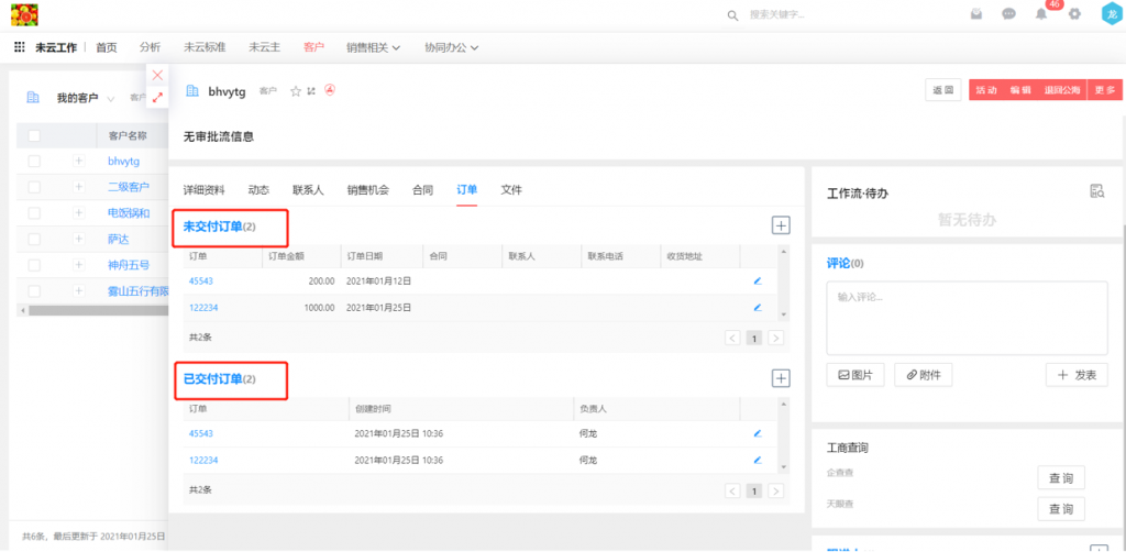 4)對(duì)象詳情頁相關(guān)列表組件可修改名稱,如在客戶詳情頁中,可以配置兩個(gè)訂單列表,分別命名為已交付訂單和未交付訂單