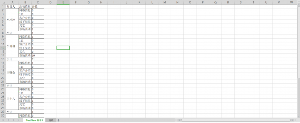 6)分類和矩陣式報(bào)表導(dǎo)出時(shí),維度和小計(jì)合計(jì)的單元格會(huì)進(jìn)行合并