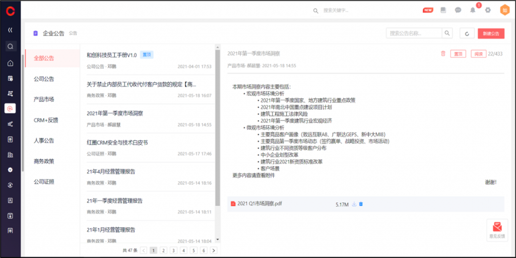 線索池、客戶池管理員分配數據后,系統會給新負責人發通知提醒