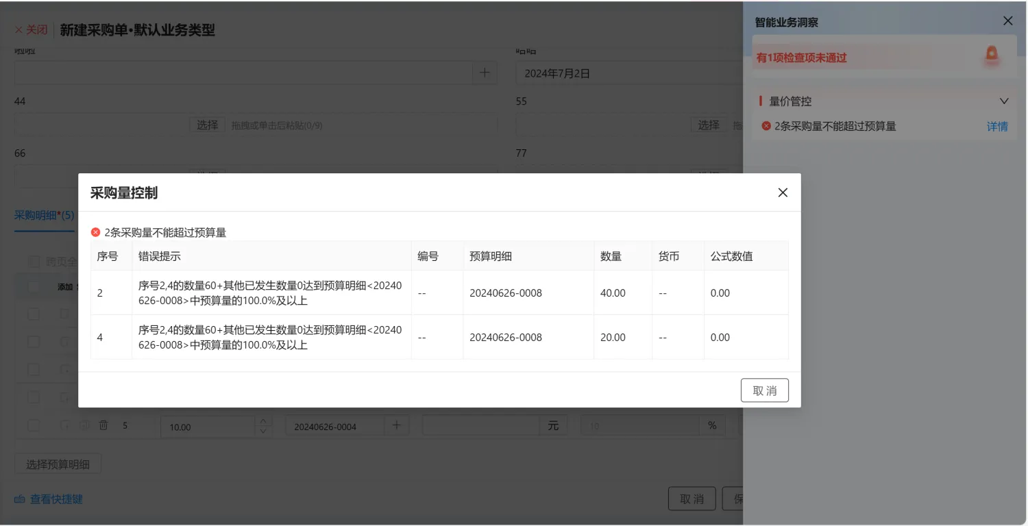 增加對于子對象的管控能力,主要用于支持自主搭建的“預算→申請→支付或領用”量價管控類場景,并且可以做到子表多行聯合管控,解決原有驗證規則無法支持的問題