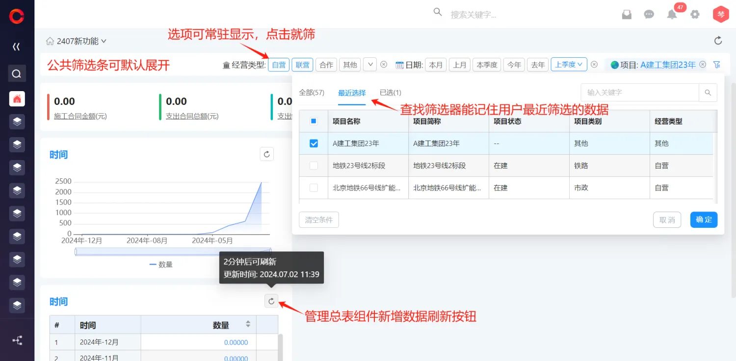 1、管理總表組件可強制刷新數據,并查看數據更新時間
