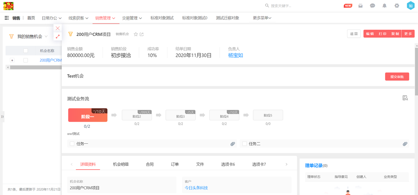 在新版本中業(yè)務(wù)流支持自動流轉(zhuǎn),使業(yè)務(wù)流執(zhí)行起來更加智能高效。通過完成階段定義里的某個任務(wù)自動觸發(fā)階段的流轉(zhuǎn),可以及時提醒員工盡快完成下一階段的任務(wù),用于多人協(xié)作的工作事務(wù)進(jìn)度管理更有效。
