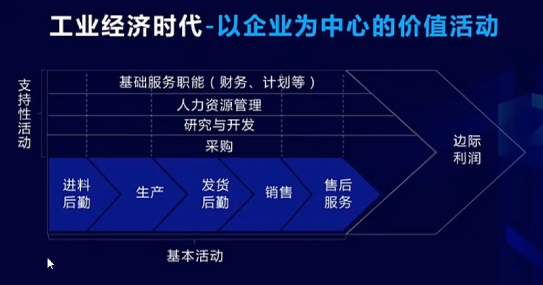 數(shù)字時代的來臨帶來的最大變化是什么?支持性活動可以產(chǎn)生價值,基本活動也可以產(chǎn)生價值,整個上下游還是可以產(chǎn)生價值。最后發(fā)現(xiàn)我們產(chǎn)生價值的空間變多了。原來只在一條鏈上,而且這條鏈上只有基本活動產(chǎn)生價值,其他只是改變成本和價值。可是數(shù)字技術(shù)來了之后,所有的環(huán)節(jié)都可以產(chǎn)生價值,無論是支持活動、基本活動,還是上下游的產(chǎn)業(yè)活動。我們告訴各位,這是源于消費方式的改變。