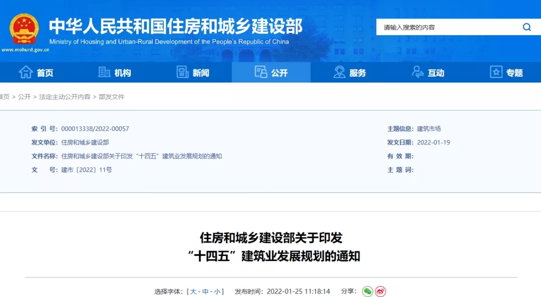 近日,住建部發布《住房和城鄉建設部關于印發“十四五”建筑業發展規劃的通知》。其中主要任務之一就是要加快智能建造與新型建筑工業化協同發展。