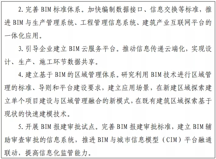 加快推進建筑信息模型(BIM)技術在工程全壽命期的集成應用, 健全數據交互和安全標準,強化設計、生產、施工各環節數字化協同,推動工程建設全過程數字化成果交付和應用。