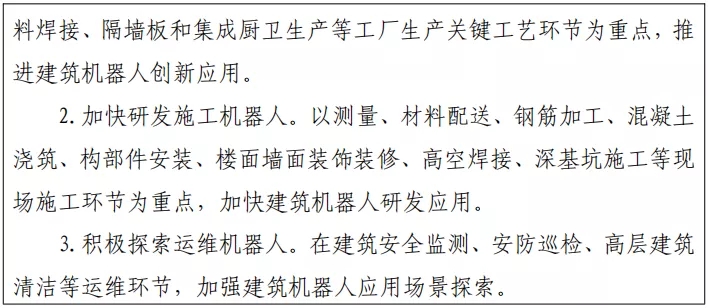 3. 加快建筑機器人研發和應用。