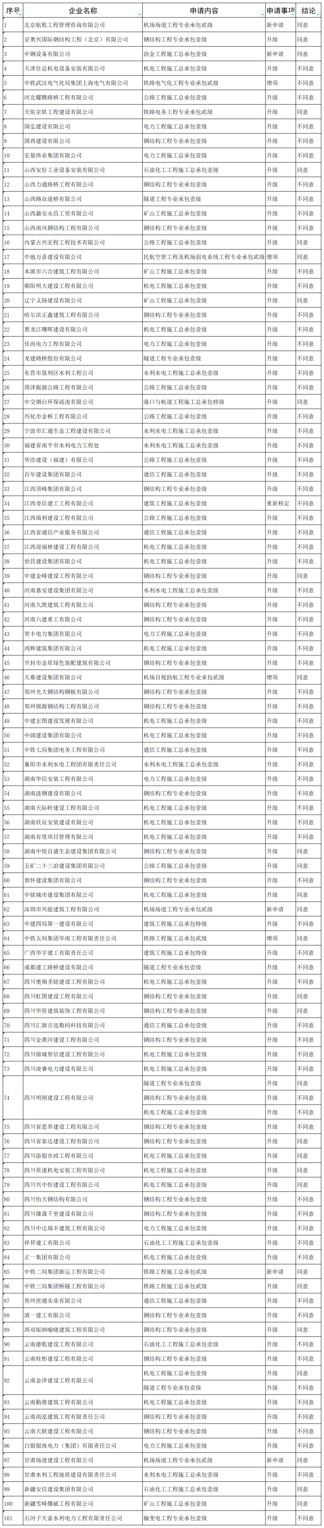 新一批建設工程企業資質專家審查意見公示!僅同意一家“升特”!