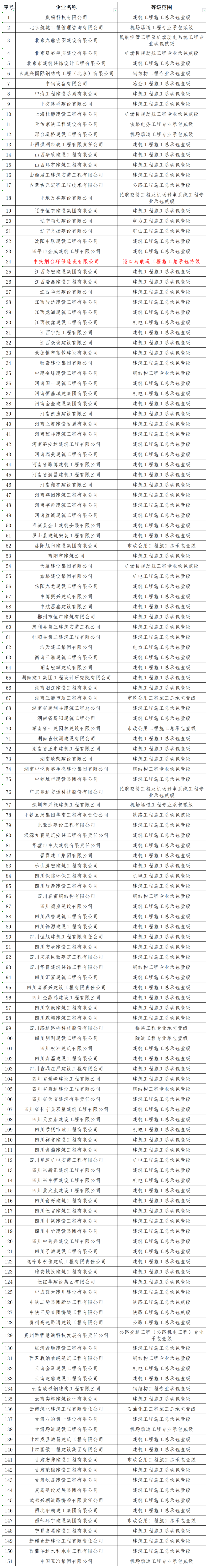 8月2日,住建部發布關于核準2023年度第七批建設工程企業資質名單的公告,其中一家建筑業企業升級特級資質:“中交煙臺環保疏浚有限公司”獲得“港口與航道工程施工總承包特級”。