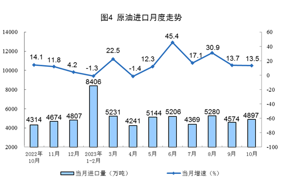 進口數據來源于海關總署,其中2023年10月份數據為快訊數據。
