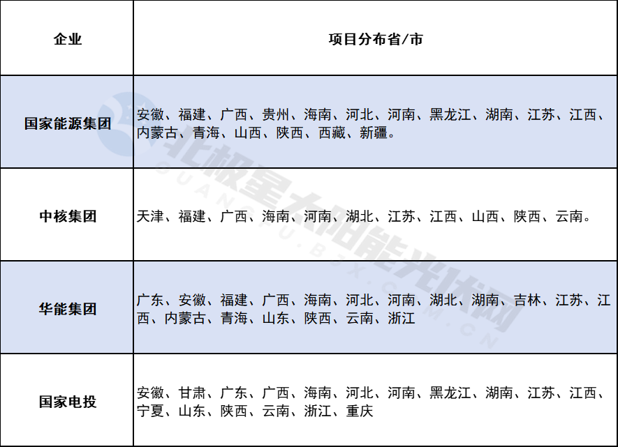 具體來看,國家電投以76個項目的總規(guī)模約10388MW位列首位,這些項目分布于安徽、福建、廣西等17個省份。