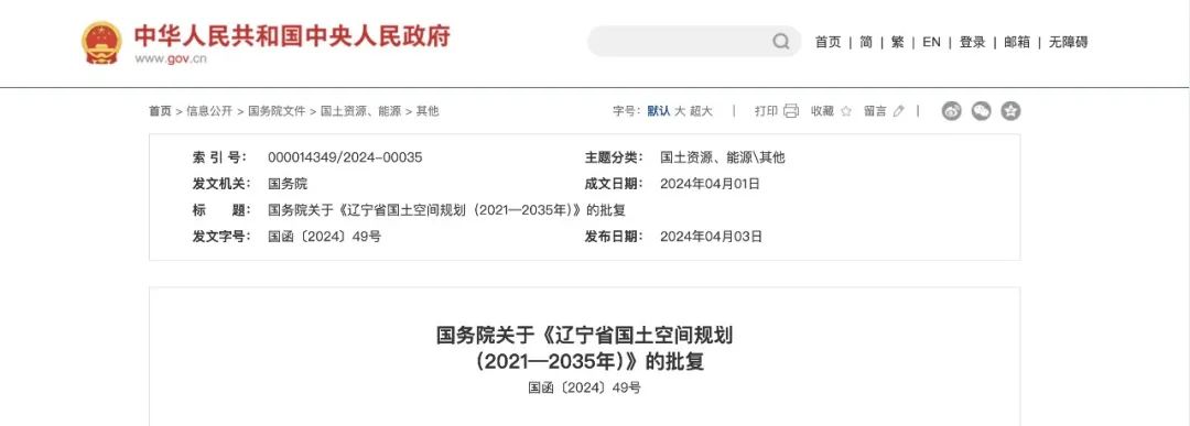 近日,國務院發布關于《遼寧省國土空間規劃(2021—2035年)》的批復。