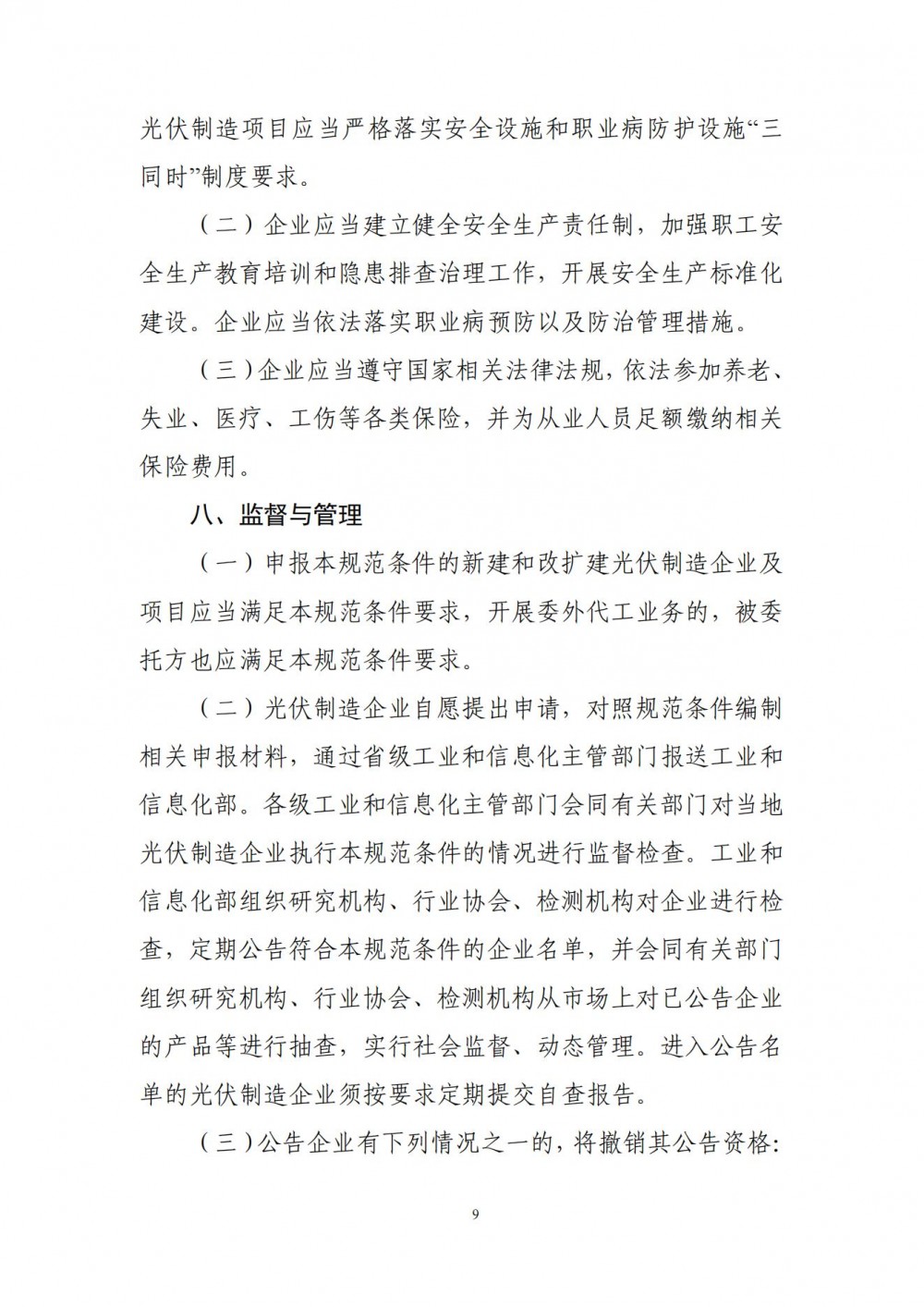 7月9日,工業和信息化部電子信息司對《光伏制造行業規范條件及公告管理辦法(征求意見稿)》公開征求意見。