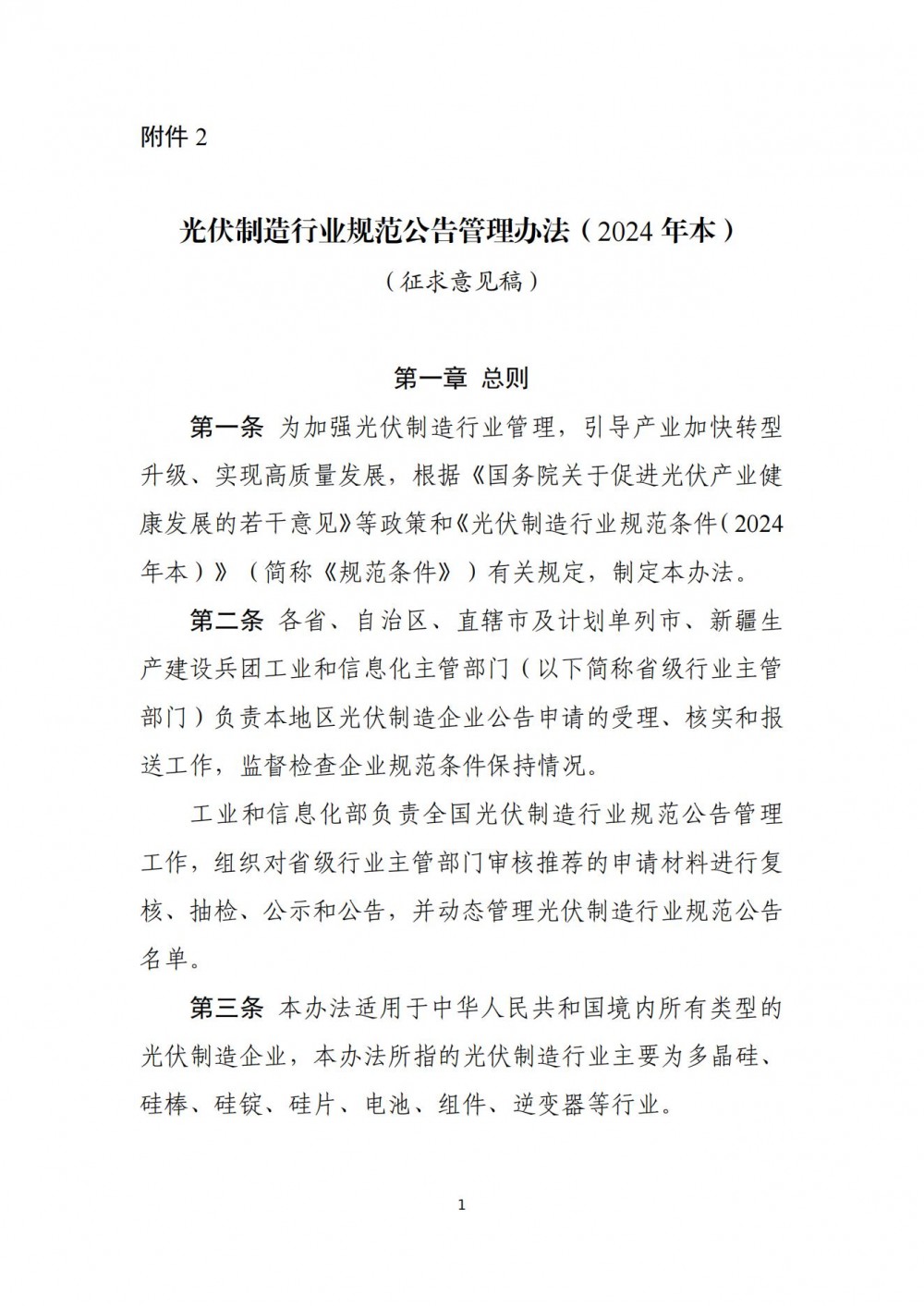 2.《光伏制造行業規范公告管理辦法(2024年本)》(征求意見稿)