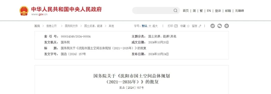 行業政策?|?國務院批復同意!沈陽、杭州兩地國土空間規劃!