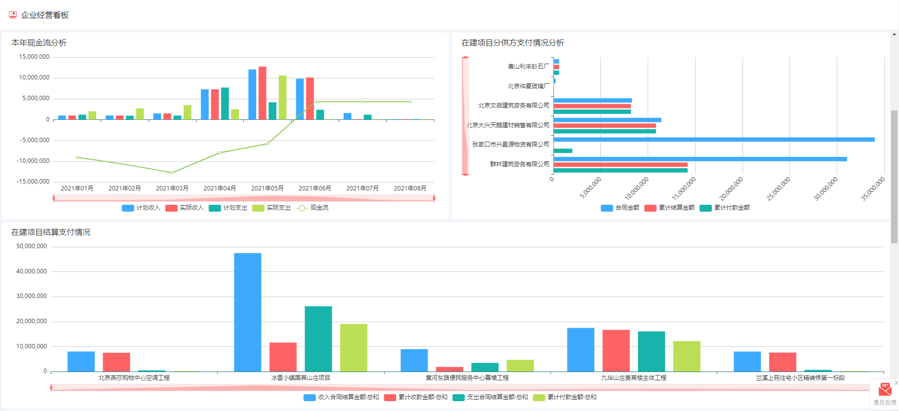 紅圈工程項(xiàng)目管理系統(tǒng)能夠以項(xiàng)目為主線,將所有圍繞項(xiàng)目的經(jīng)營性數(shù)據(jù)及時(shí)做好累計(jì)。以單個(gè)項(xiàng)目為緯度,將項(xiàng)目的收入、支出數(shù)據(jù)匯總分析,幫助企業(yè)更好地管理項(xiàng)目收支,以保證現(xiàn)金流正常運(yùn)轉(zhuǎn)。