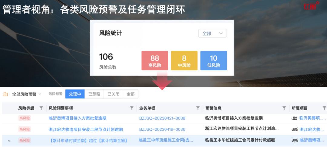 紅圈系統助力企業實現了降低成本,提升效率的管理目標。將單項目成本數據與財務打通,避免人員重復工作,通過系統把人解脫了出來。未來,公司將進一步夯實管理基礎,優化經營模式,對內提升公司管控能力,對外塑造企業品牌形象,為助推企業發展再上新高奠定堅實的基礎。(數字化項目管理)
